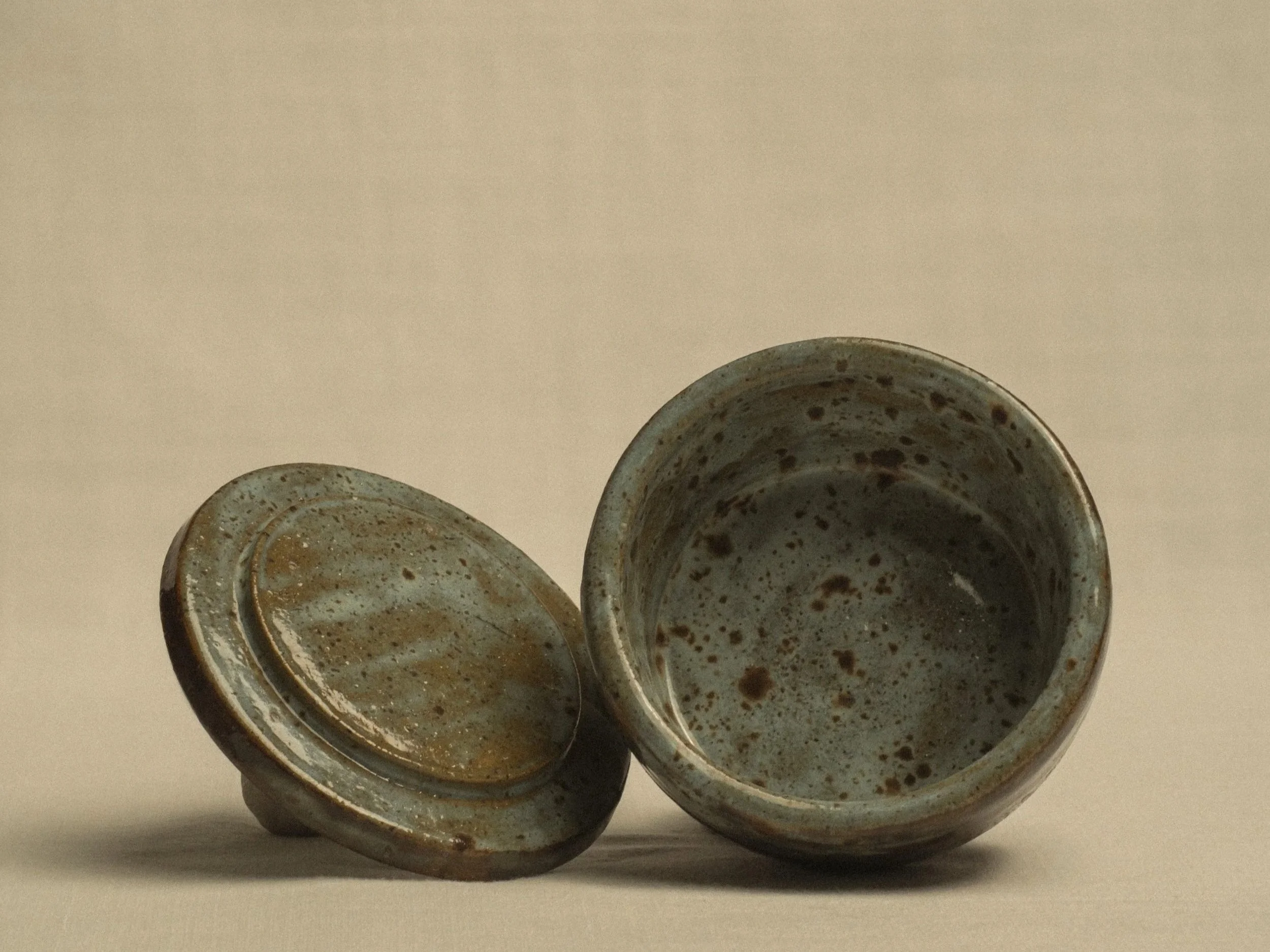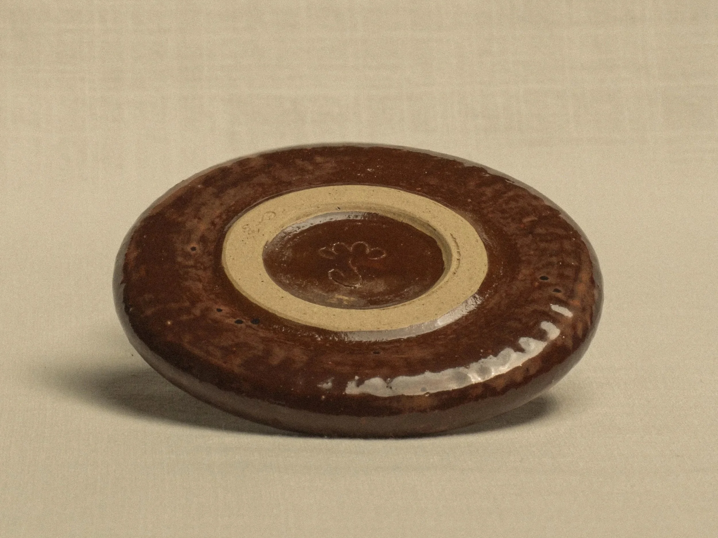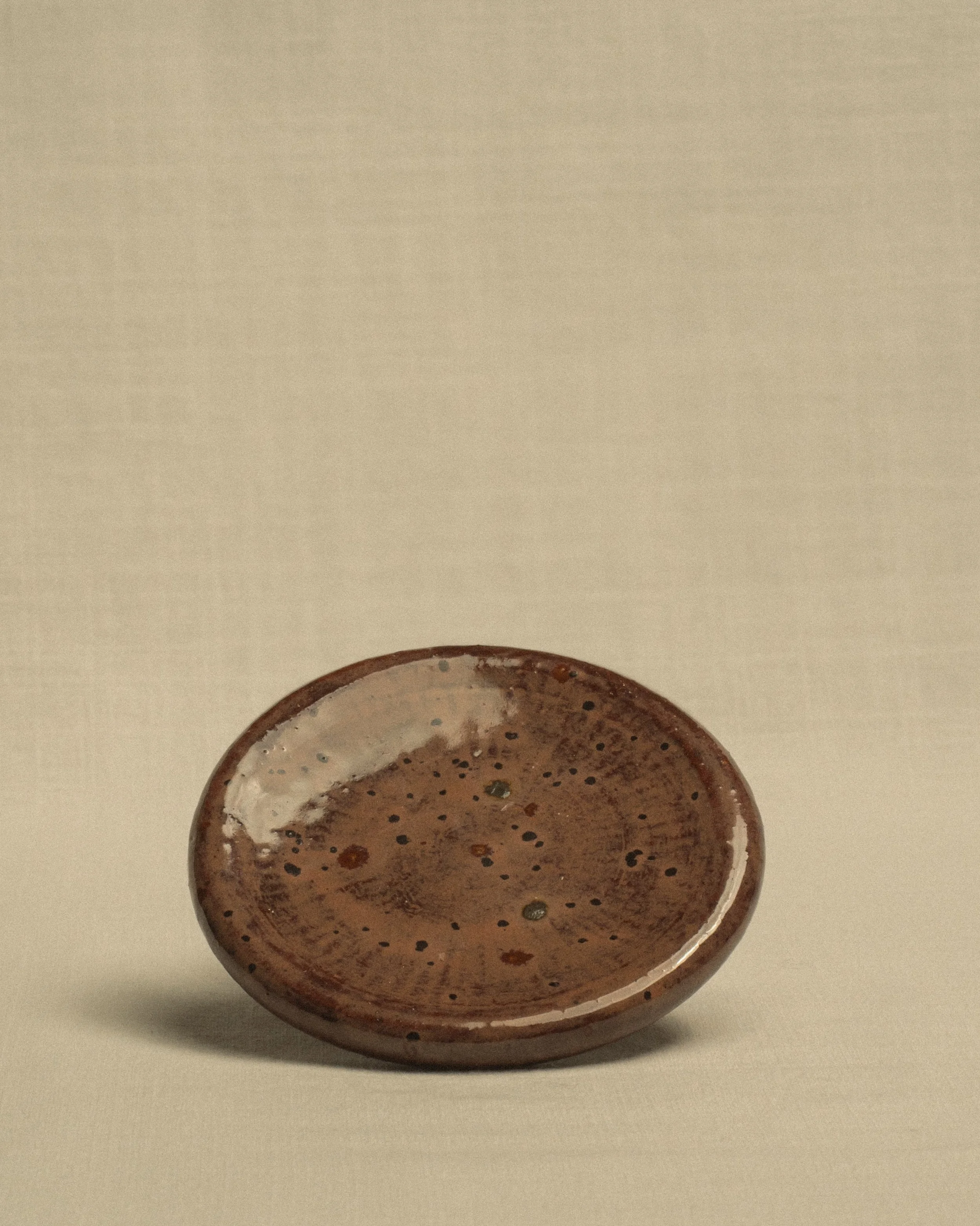 Speckled spoon rest that is a bit more shallow than what you typically see, but still gets the job done universally. With the simple, shallow dish shape, it does not need to stay a spoon rest; it can be a trinket tray, a plant pot saucer, a key dish, etc.